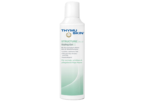 Тимускин стайлинг гель (thymuskin structure styling gel) используется для укладки волос. Стайлинг гель thymuskin увлажняет стержни, питает волосяные кутикулы жизненно важными компонентами, при регулярном использовании способствует улучшению роста волос. Использование structure styling gel имеет накопительный эффект, компоненты геля тимускин остаются "запечатанными" в стержнях волос на длительное время, что способствует восстановлению их структуры.